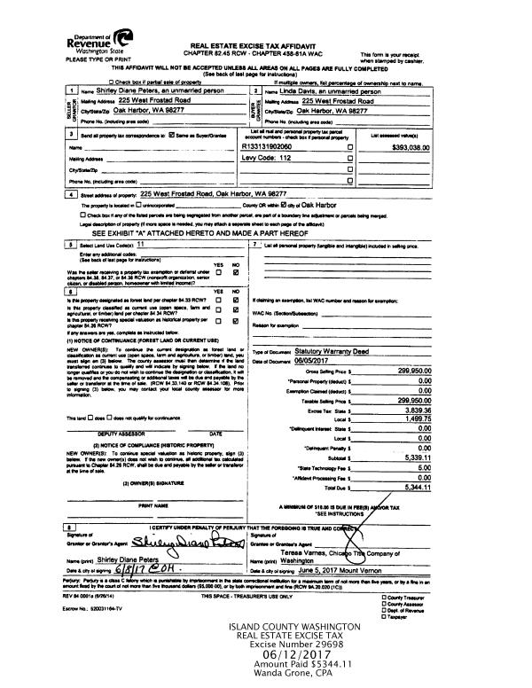 | Mailing Address: | ANTHONY REED 952 LYLE RIDGE CIR OAK HARBOR, WA 98277 | % Ownership: | 100.0000000000% |