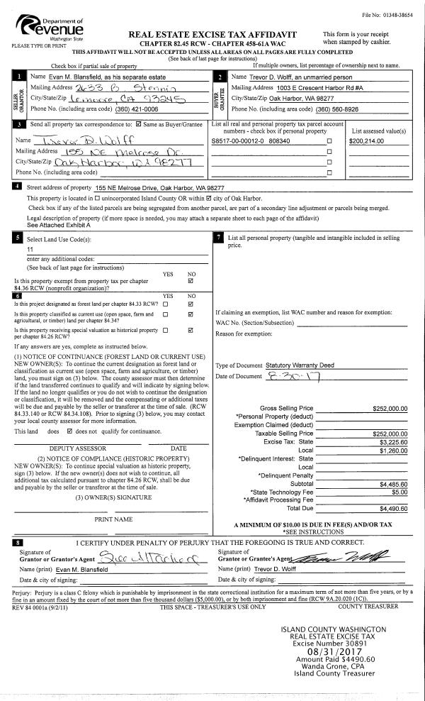 | 3 | 05/15/2013 | WD | Warranty Deed | RSM DEVELOPMENT INC | SEATTLE PACIFIC HOMES INC | | | $60,000.00 | 11457 | 4340880 |