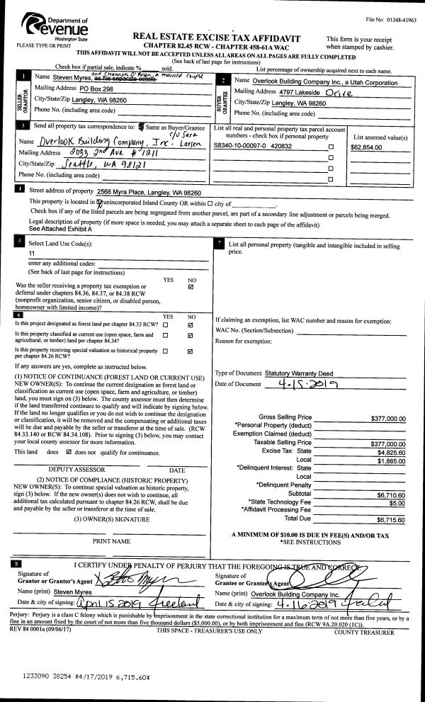 | Mailing Address: | 1044 LYLE RIDGE CIR OAK HARBOR, WA 98277 | % Ownership: | 100.0000000000% |