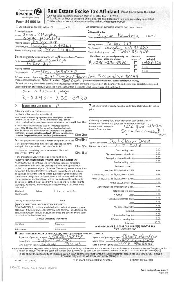 | Mailing Address: | KAMETTE BEACH 1037 LYLE RIDGE CIR OAK HARBOR, WA 98277 | % Ownership: | 100.0000000000% |