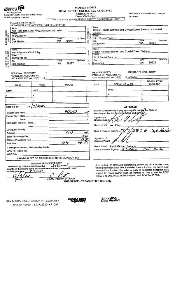 | Mailing Address: | 959 LYLE RIDGE CIR OAK HARBOR, WA 98277 | % Ownership: | 100.0000000000% |