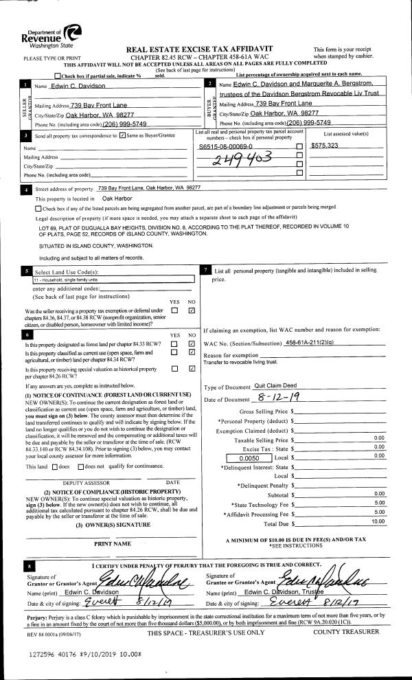 | Mailing Address: | 1457 W WHIDBEY AVE OAK HARBOR, WA 98277 | % Ownership: | 100.0000000000% |