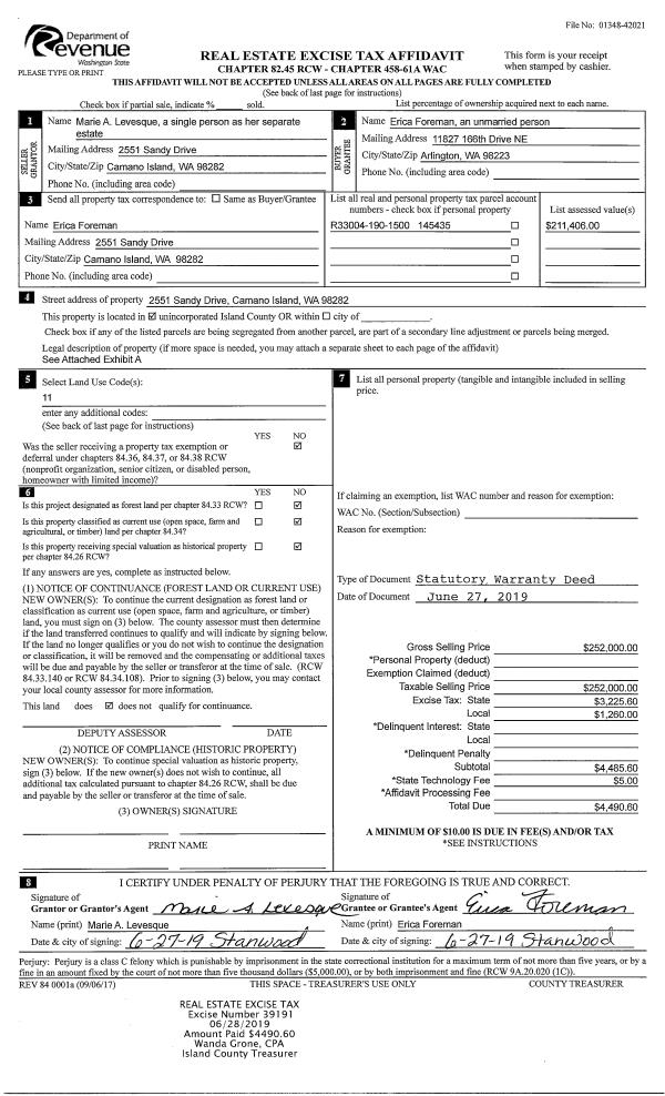 | Mailing Address: | 967 SW SILVERBERRY ST OAK HARBOR, WA 98277 | % Ownership: | 100.0000000000% |