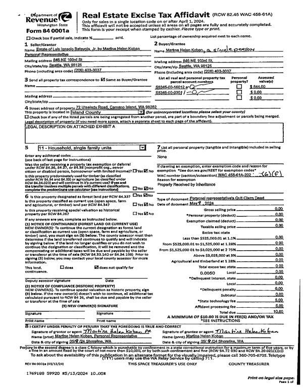 | Mailing Address: | 2375 SW NAVIGATOR LOOP OAK HARBOR, WA 98277 | % Ownership: | 100.0000000000% |