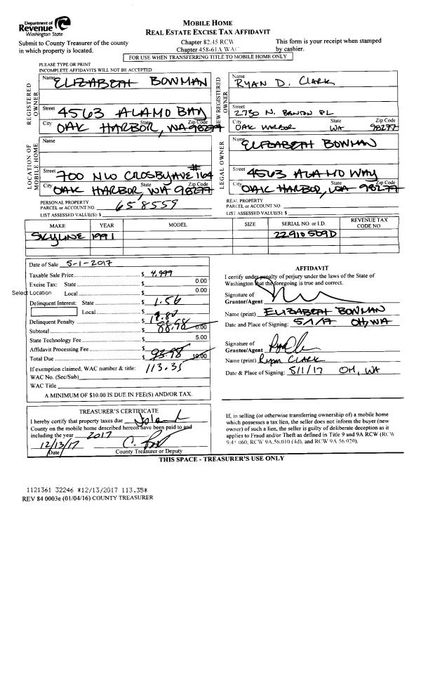 | Mailing Address: | 1632 SW 24TH AVE OAK HARBOR, WA 98277 | % Ownership: | 100.0000000000% |