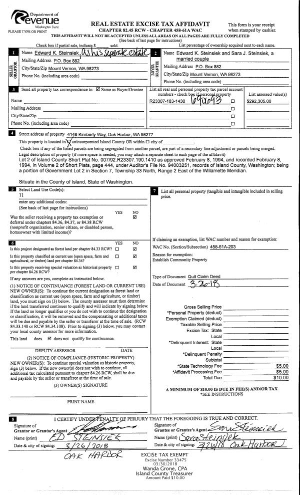 | Mailing Address: | AMY L RICE 28602 74TH DR NW STANWOOD, WA 98292 | % Ownership: | 100.0000000000% |