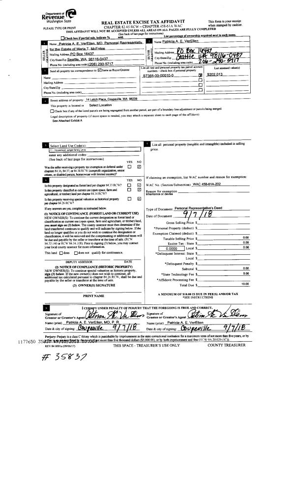| Mailing Address: | KAREN L LINGENFELTER 1995 ARMSTRONG RD COUPEVILLE, WA 98239 | % Ownership: | 100.0000000000% |
