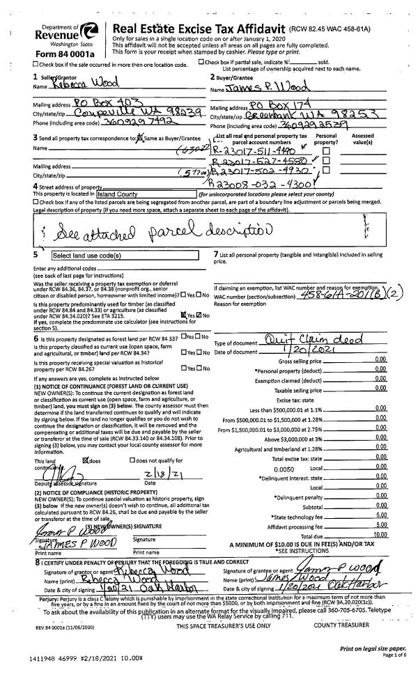 | Mailing Address: | 6483 WINTERGREEN DR CLINTON, WA 98236 | % Ownership: | 100.0000000000% |