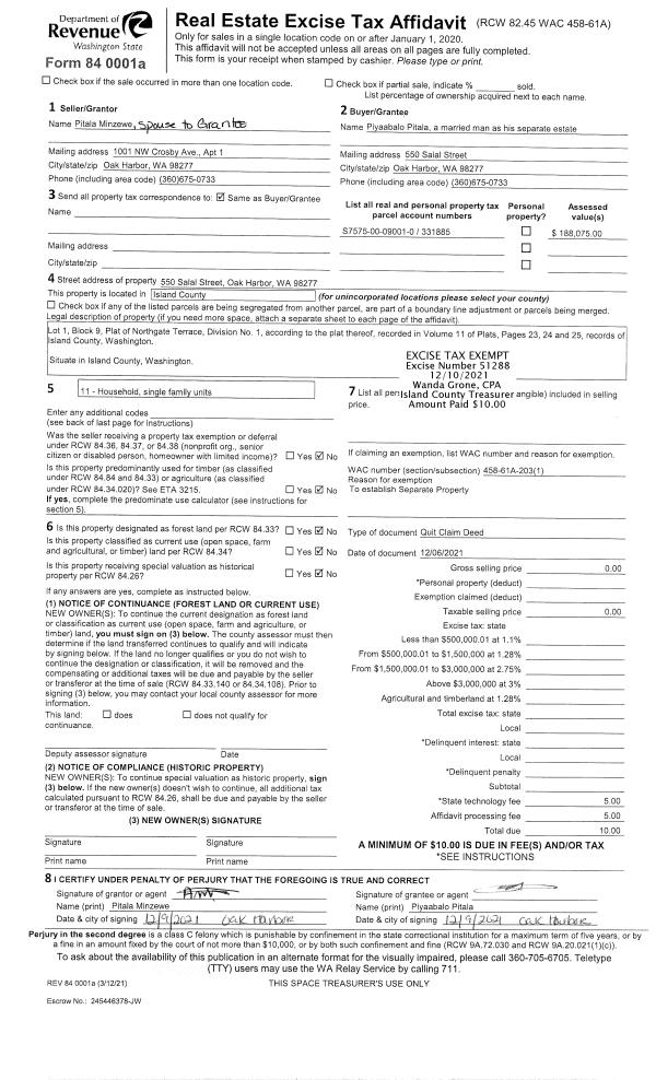 | Mailing Address: | 20 FRONT ST NW PO BOX 918 COUPEVILLE, WA 98282 | % Ownership: | 100.0000000000% |