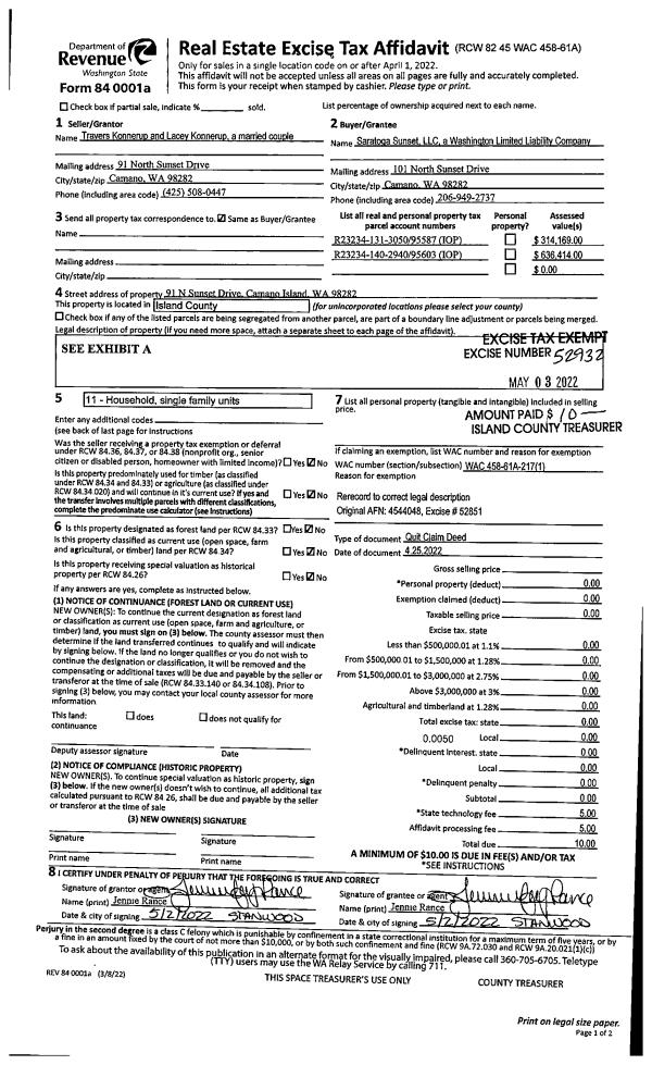 | Mailing Address: | 811 N SUNRISE BLVD CAMANO ISLAND, WA 98282 | % Ownership: | 100.0000000000% |