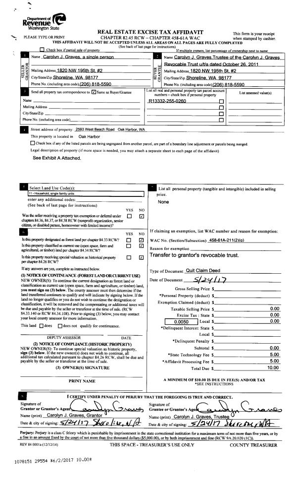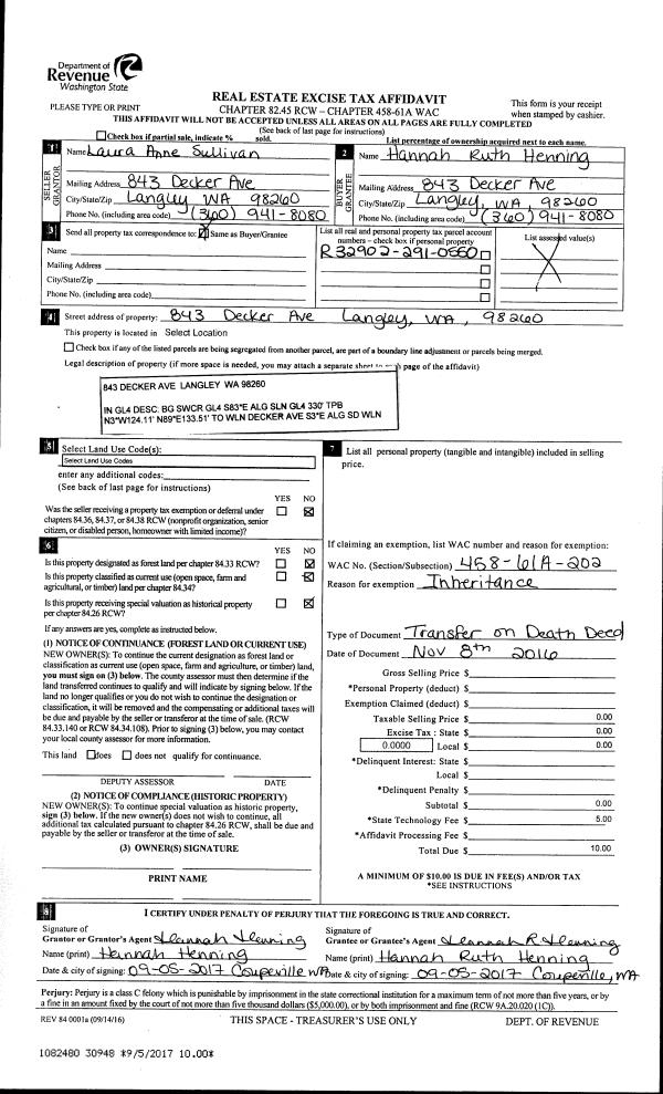 | 5 | 11/16/2016 | GRANTD | Grant Deed | FAKKEMA I LLC | WHIDBEY CAMANO LAND TRUST | | | $490,000.00 | 27079 | 4412213 |