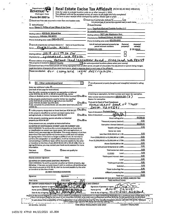 | Tax Area: | 719 - APPRAISER-S Whid Schl Dist, outside Langley, vacant & 50 acres or less | Land Use Code | 91 |