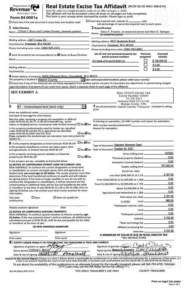| 1 | 06/14/2021 | WD | Warranty Deed | RICHEY, MICHAEL | STILLAGUAMISH TRIBE OF INDIANS | | | $950,000.00 | 48734 | 4522148 |