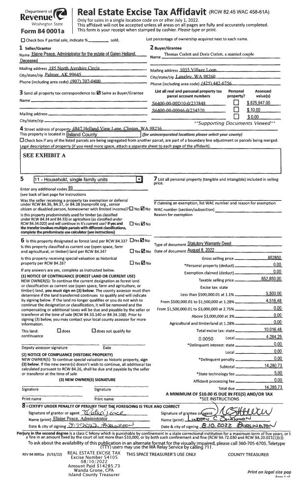 | 1 | 12/03/2012 | REC | Real Estate Contract | CAMANO FIRE DIST #1 | CAMANO SCHOOLHOUSE FOUNDATION | | | $60,000.00 | 9785 | 4329422 |