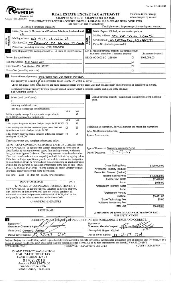 | Mailing Address: | 1640 SW MULBERRY PL C201 OAK HARBOR, WA 98277 | % Ownership: | 100.0000000000% |
