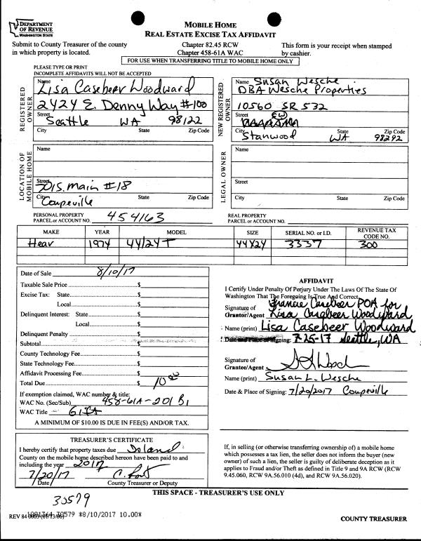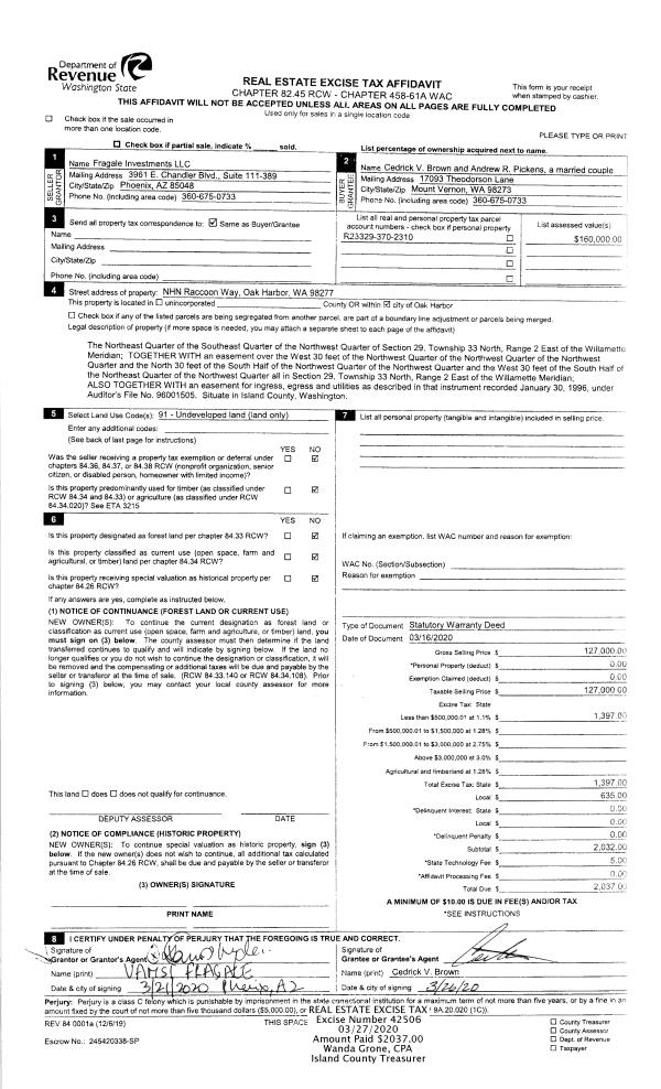 | Mailing Address: | 1640 SW MULBERRY PL #C202 OAK HARBOR, WA 98277 | % Ownership: | 100.0000000000% |