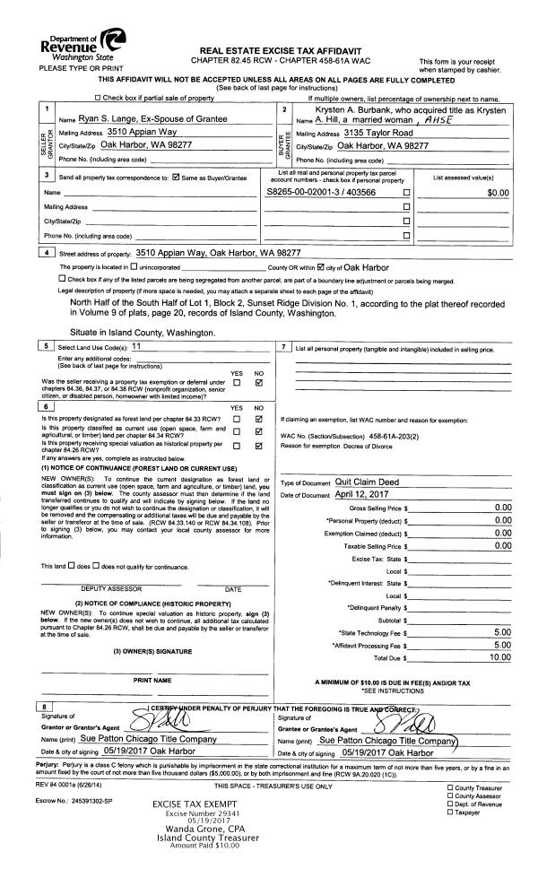| Mailing Address: | MADDISON L NUQUI 1028 COVE VIEW CIR OAK HARBOR, WA 98277-8257 | % Ownership: | 100.0000000000% |