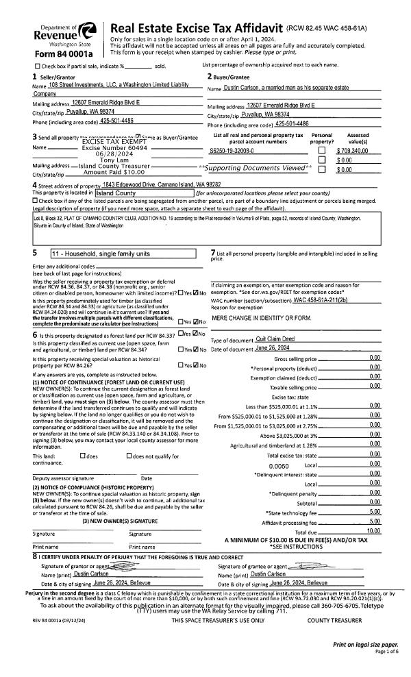 | Mailing Address: | RACINE L WILSON 1776 SOUTHWEST DOWNFIELD WAY OAK HARBOR, WA 98277 | % Ownership: | 100.0000000000% |