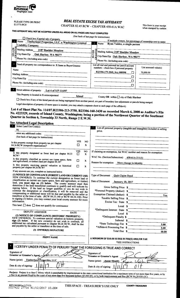 | Mailing Address: | MARGARITA AGUILAR 1912 SW DOWNFIELD WAY OAK HARBOR, WA 98277 | % Ownership: | 100.0000000000% |