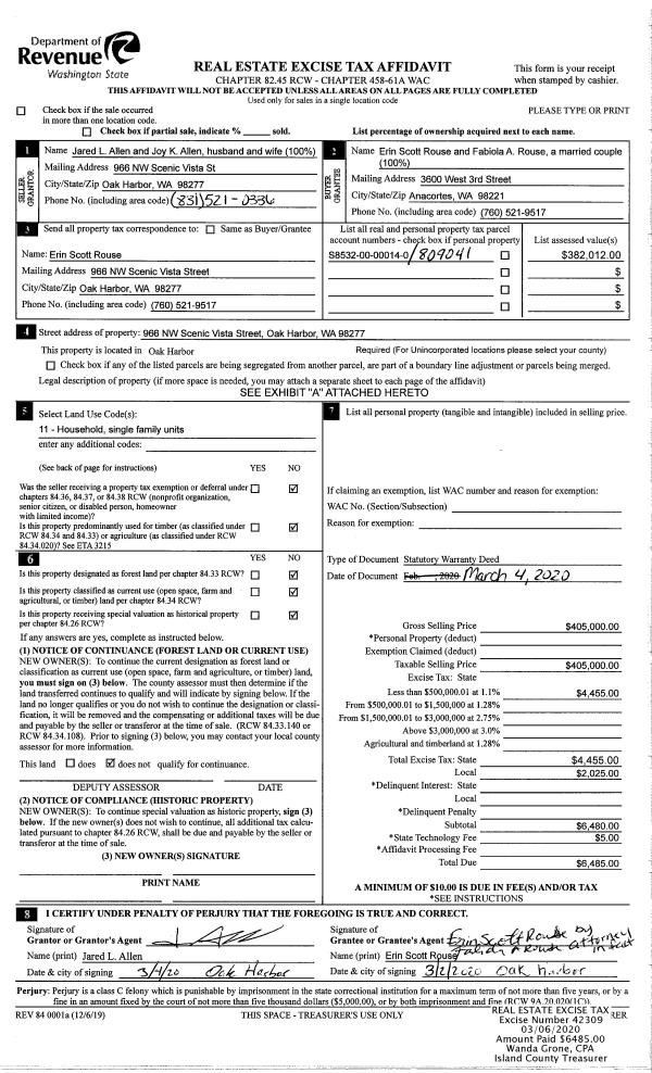 | 1 | 10/07/2015 | WD | Warranty Deed | HILTON TRUSTEE, MICHAEL W | EM & M WHIDBEY, LLC | | | $0.00 | 22226 | 4389807 |