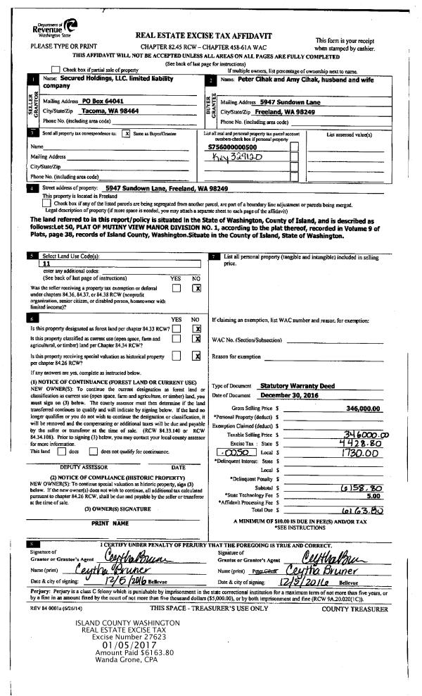 | Mailing Address: | AMY I CUNEO 3810 BEAVER CREEK LN CLINTON, WA 98236-8414 | % Ownership: | 100.0000000000% |