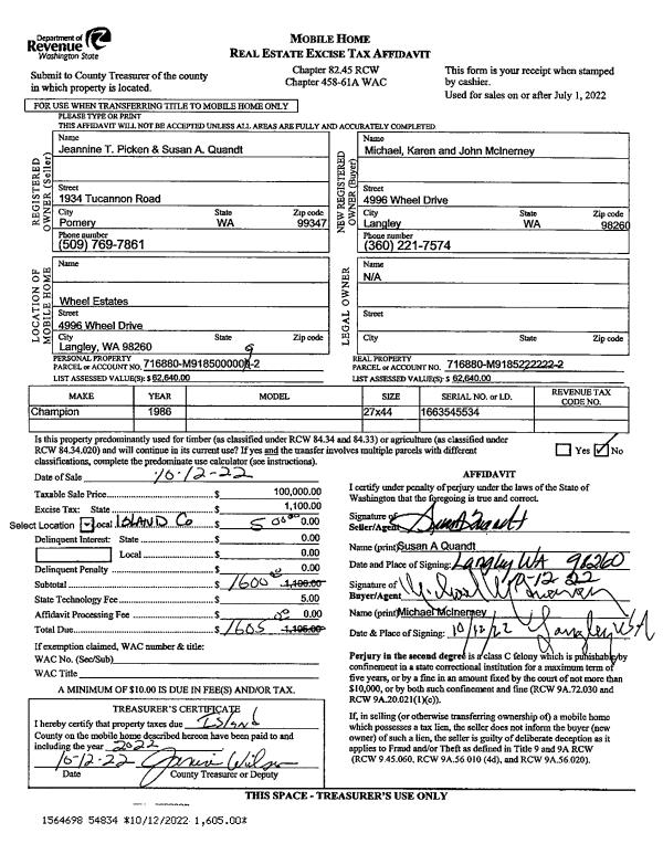 | Mailing Address: | 1408 OCEAN DR CAMANO ISLAND, WA 98282 | % Ownership: | 100.0000000000% |