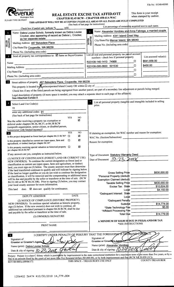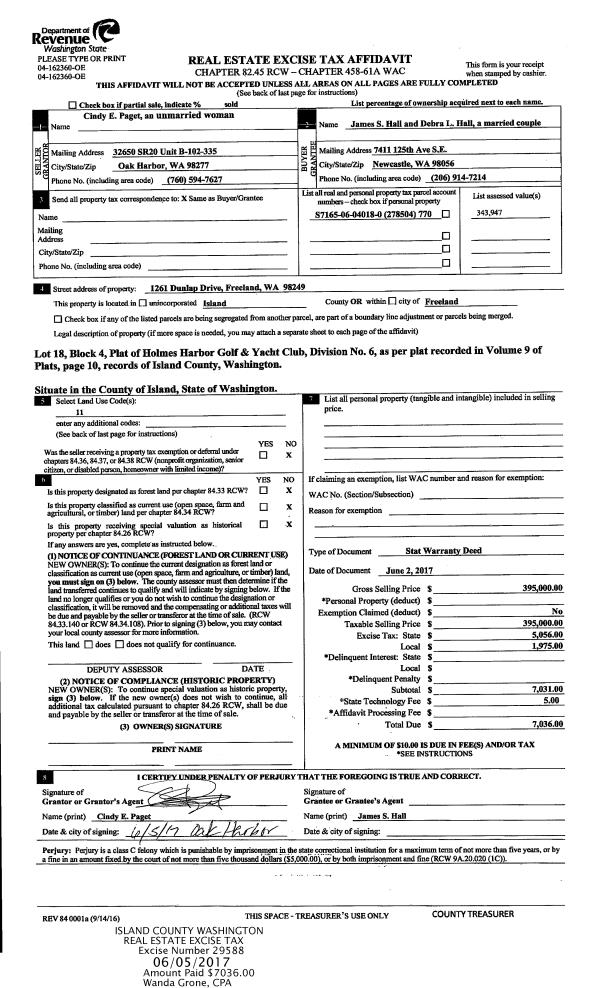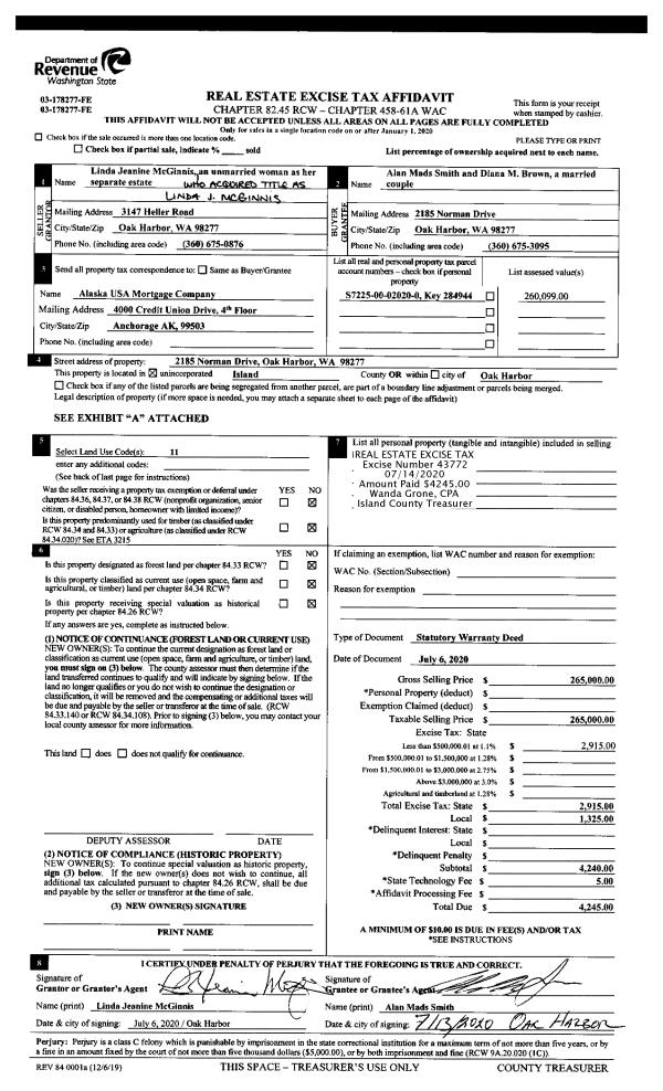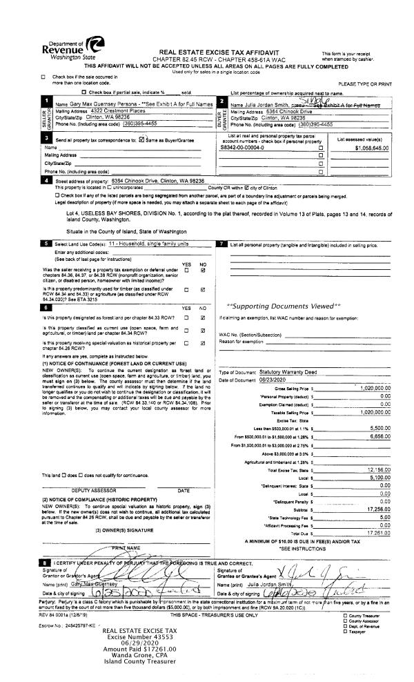 | Mailing Address: | CHANTELLE A GUISINGER 1526 KING SALMON CT FREELAND, WA 98249 | % Ownership: | 100.0000000000% |