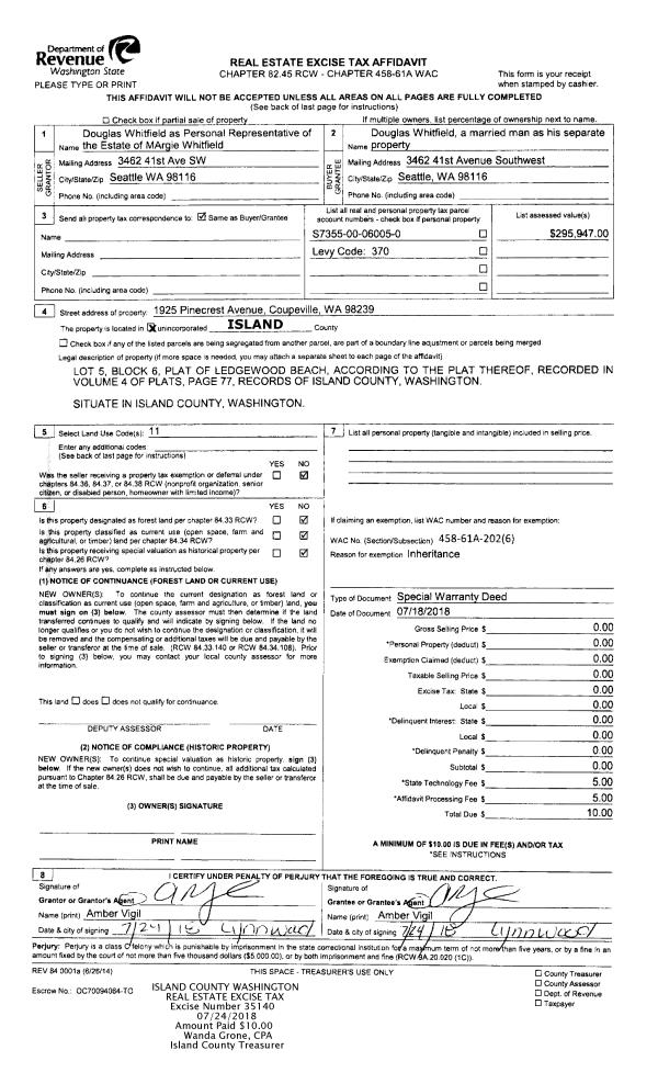 | Mailing Address: | KATHLEEN MAUREEN SMITH 193 VISTA DEL MAR ST CAMANO ISLAND, WA 98282 | % Ownership: | 100.0000000000% |