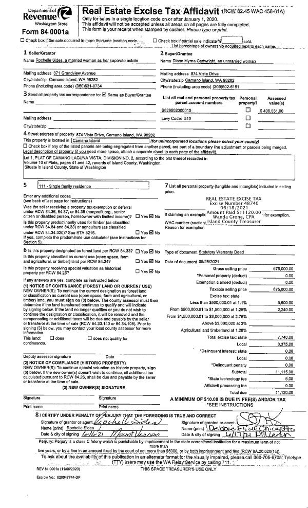| Tax Area: | 812 - APPRAISER-S Whid Schl Dist, outside Langley, improved, greater than 1 acre | Land Use Code | 11 |