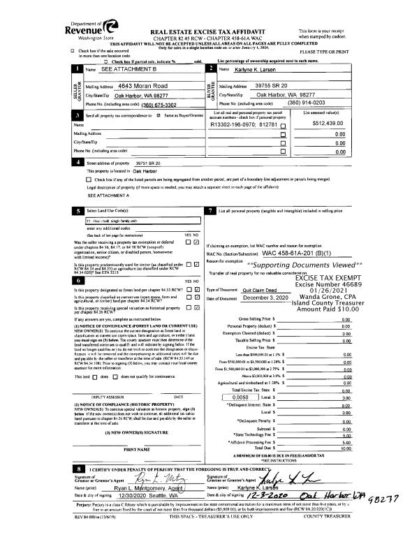 | Tax Area: | 719 - APPRAISER-S Whid Schl Dist, outside Langley, vacant & 50 acres or less | Land Use Code | 91 |