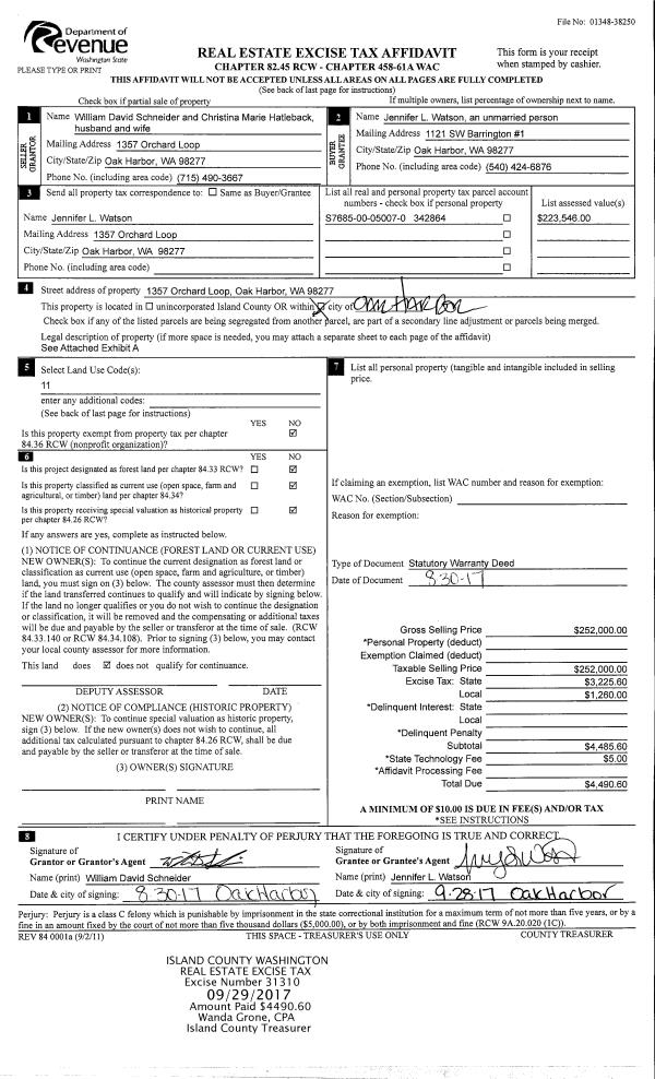 | Mailing Address: | BRITTANY M KRAJCAR 1058 ZEPHYR LN CAMANO ISLAND, WA 98282 | % Ownership: | 100.0000000000% |