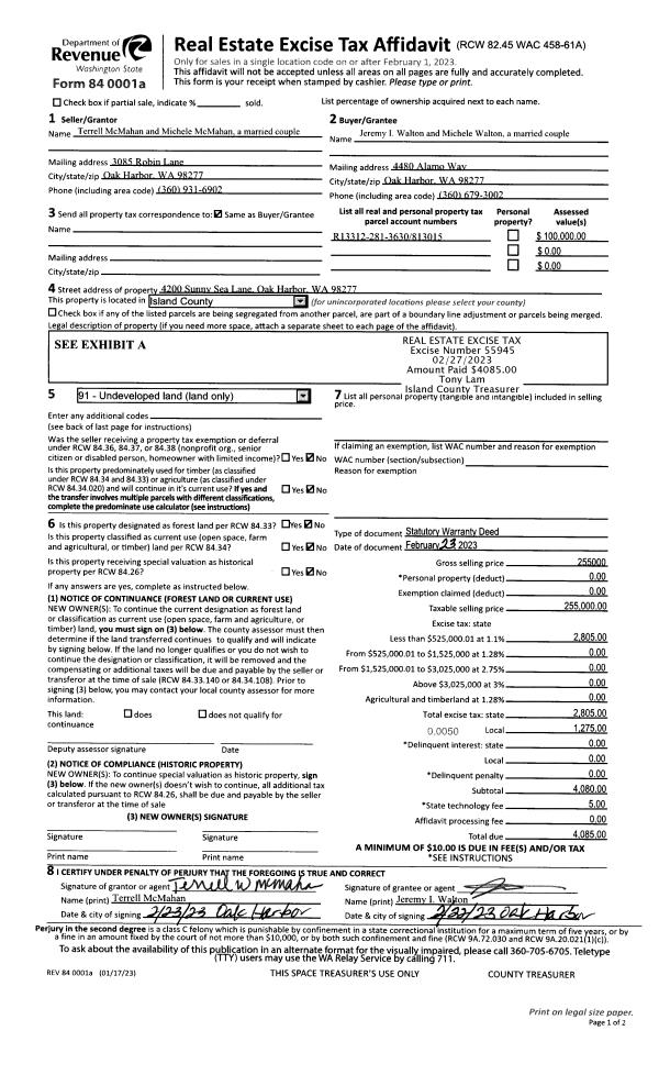 | 2 | 12/15/2023 | EZ | Easement | WASHO, JOHN | ONAMAC MAINTENANCE ASSOCIATION | | | $160,000.00 | 58782 | 4567754 |