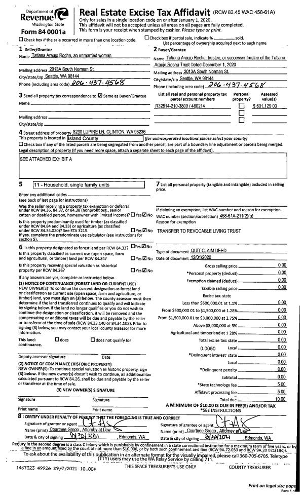 | Mailing Address: | 130 TH ST UNIT B201 LANGLEY, WA 98260 | % Ownership: | 100.0000000000% |