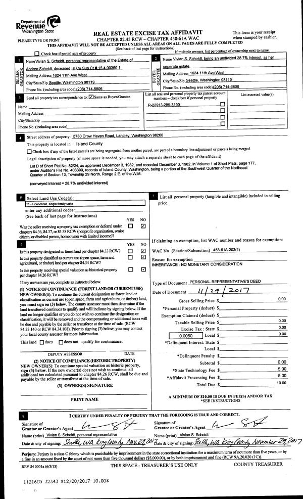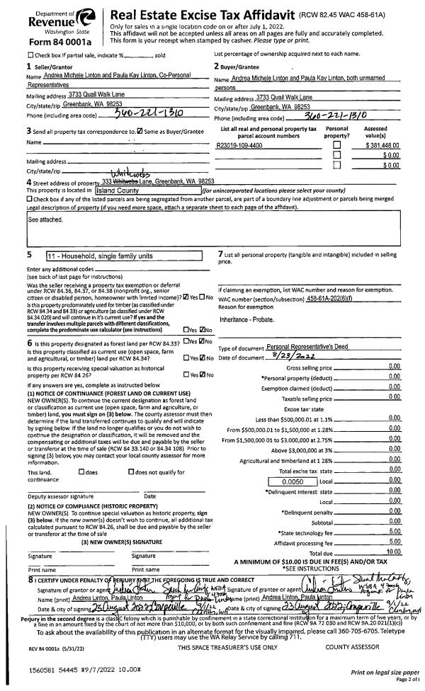 | Mailing Address: | CARIN GRIGGS 1338 SUNRISE ESTATES PLACE CAMANO ISLAND, WA 98282 | % Ownership: | 100.0000000000% |