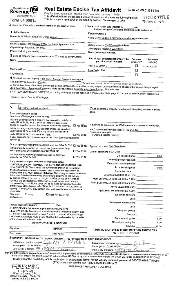 | Tax Area: | 700 - APPRAISER-S Whid Schl Dist, in town of Langley | Land Use Code | 11 |