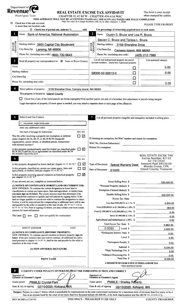 | 1 | 12/21/2015 | WD | Warranty Deed | WATERMAN, DEBRA J | ISLAND COUNTY | | | $555,000.00 | 23021 | 4393461 |