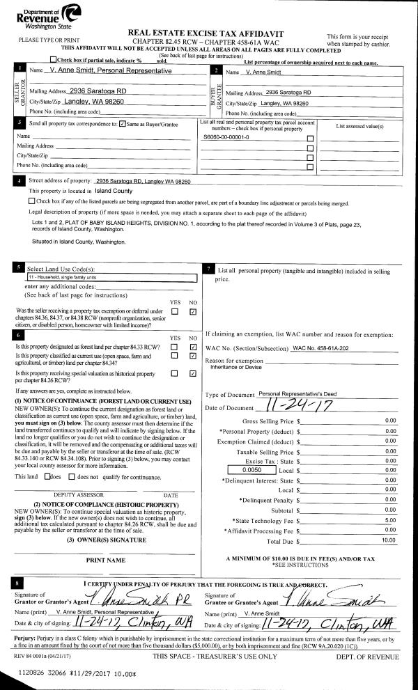 | 1 | 10/30/2017 | WD | Warranty Deed | WHIDBEY EAST HOLDINGS, LLC | KELLOGG, SUSAN J | | | $240,000.00 | 31818 | 4433623 |