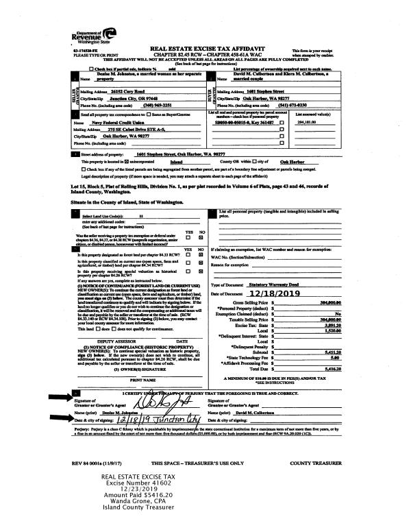| Mailing Address: | ALEJANDRO ALCOCER 885 SANDS VIEW RD CAMANO ISLAND, WA 98282 | % Ownership: | 100.0000000000% |