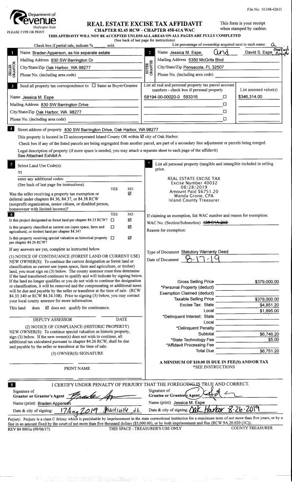 | 4 | 06/27/2019 | WD | Warranty Deed | RELIABLE HOLDINGS, INC | SWANSON, AMANDA | | | $436,000.00 | 39237 | 4466511 |