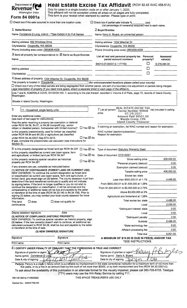 | Tax Area: | 812 - APPRAISER-S Whid Schl Dist, outside Langley, improved, greater than 1 acre | Land Use Code | 11 |