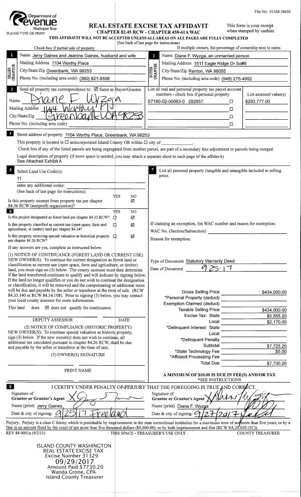| Mailing Address: | CATHERINE ELIZABETH DUSSAULT TRUSTEE 3295 FOX SPIT ROAD LANGLEY, WA 98260 | % Ownership: | 100.0000000000% |