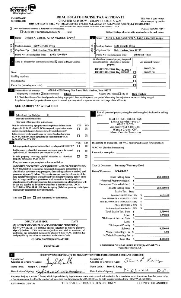 | Tax Area: | 719 - APPRAISER-S Whid Schl Dist, outside Langley, vacant & 50 acres or less | Land Use Code | 88 |