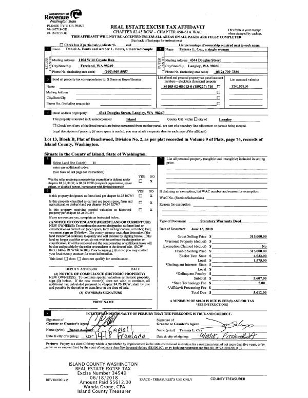 | 1 | 12/20/2017 | EZ | Easement | VANDE WERFHORST, GERALD ALLEN | | | | $20,000.00 | 32439 | 4436489 |