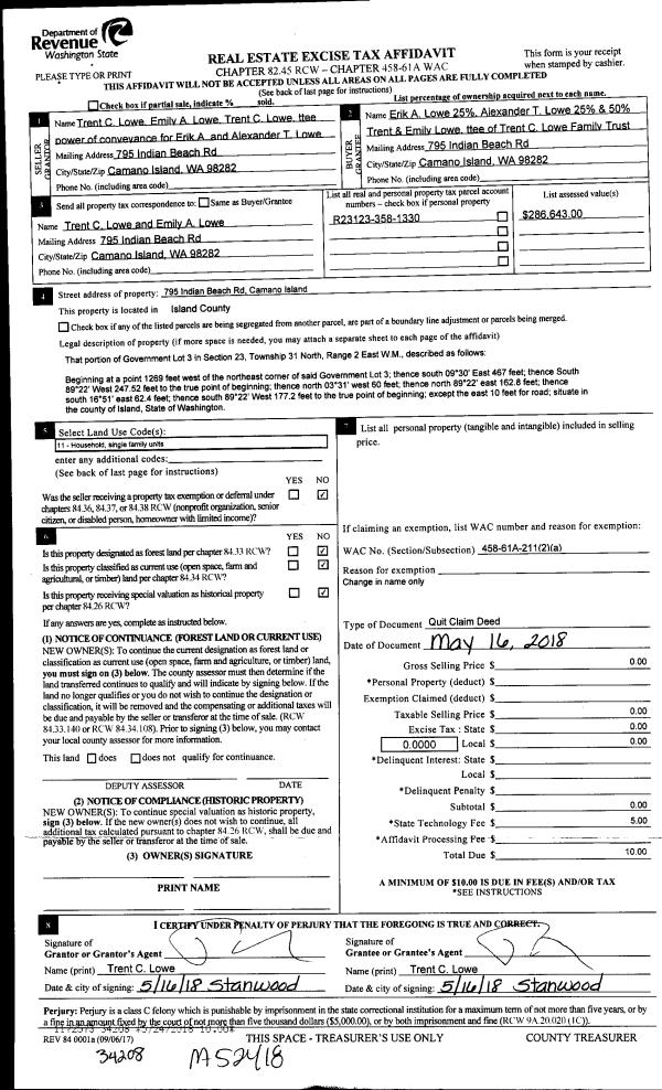 | Mailing Address: | 3525 WILDES RD CLINTON, WA 98236 | % Ownership: | 100.0000000000% |