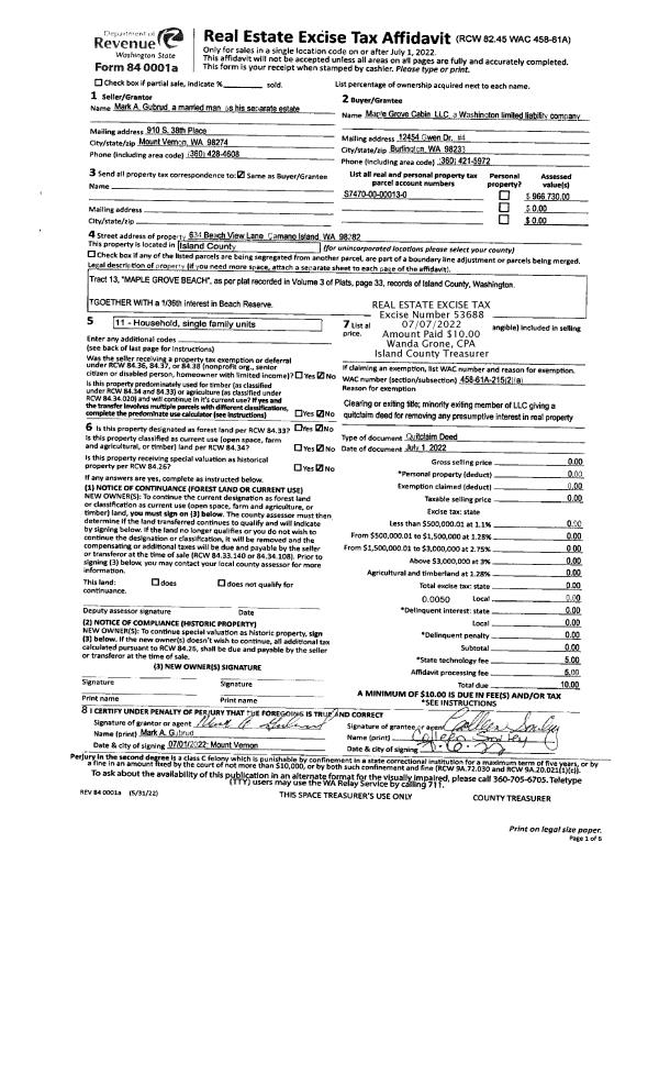 | Mailing Address: | 2674 S CAMANO DR CAMANO ISLAND, WA 98282 | % Ownership: | 100.0000000000% |