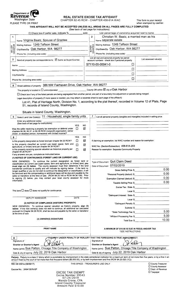 | Tax Area: | 719 - APPRAISER-S Whid Schl Dist, outside Langley, vacant & 50 acres or less | Land Use Code | 91 |