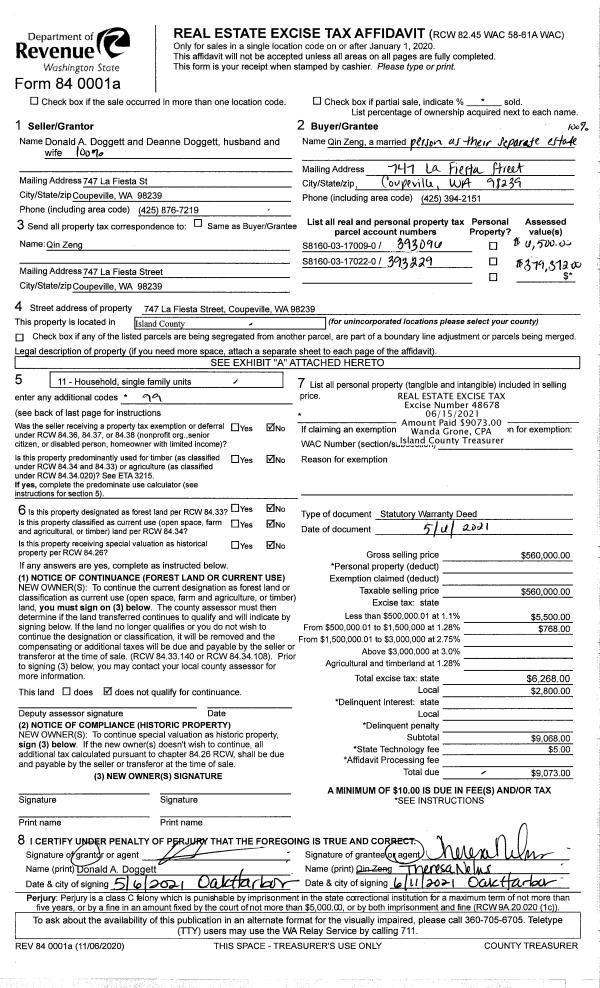 | Mailing Address: | CARYN J CAMERON 896 HENRY LN CAMANO ISLAND, WA 98282 | % Ownership: | 100.0000000000% |