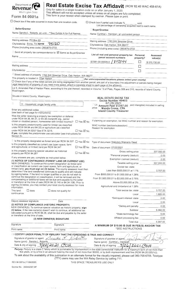 | Tax Area: | 712 - APPRAISER-S Whid Schl Dist, outside Langley, improved, greater than 1 acre | Land Use Code | 11 |