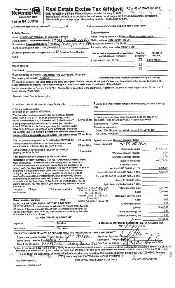 | Mailing Address: | SAMANTHA VORHOF 4985 EAGLE RIDGE DR FREELAND, WA 98249 | % Ownership: | 100.0000000000% |