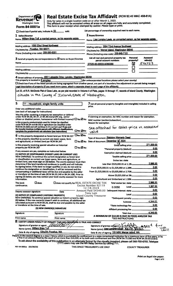 | Tax Area: | 719 - APPRAISER-S Whid Schl Dist, outside Langley, vacant & 50 acres or less | Land Use Code | 91 |